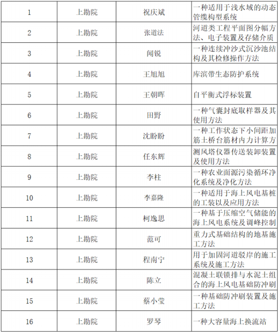12月18日,上海市總工會下發(fā)了《2023年度“一線職工授權(quán)發(fā)明專利獎勵”通知》,三峽上海院16名職工申報的16項發(fā)明專利獲上海市總工會2023年度一線職工發(fā)明專利獎。
